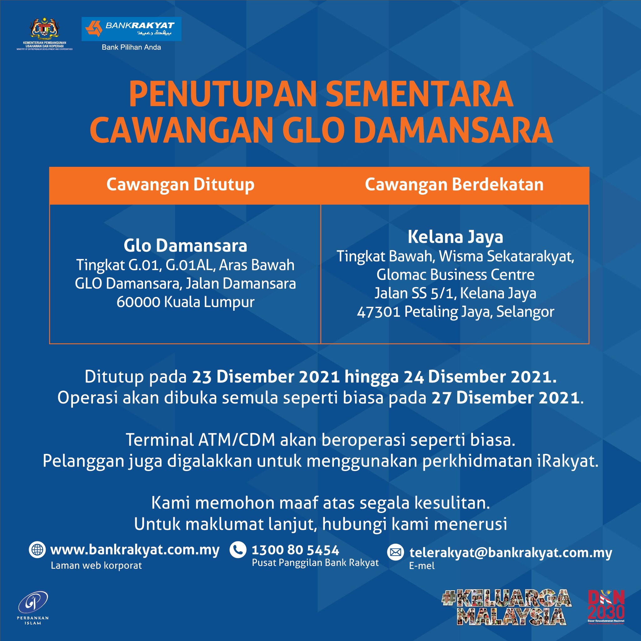 Bank Rakyat Pelanggan Yang Dihargai Sila Ambil Maklum Berkaitan Penutupan Sementara Pusat Kewangan Auto Jalan Ipoh Pada 20 Ogos 2021 Operasi Akan Dibuka Semula Pada 23 Ogos 2021 Seperti Yang Dinyatakan